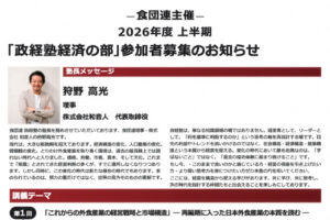 食団連主催 2026年度 上半期「政経塾経済の部」参加者募集のお知らせNew!!