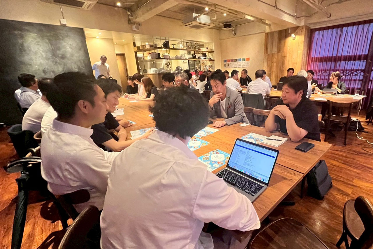 名刺交換・歓談に加え、行政×飲食店が混ざり合う座席配置でのディスカッションを実施。